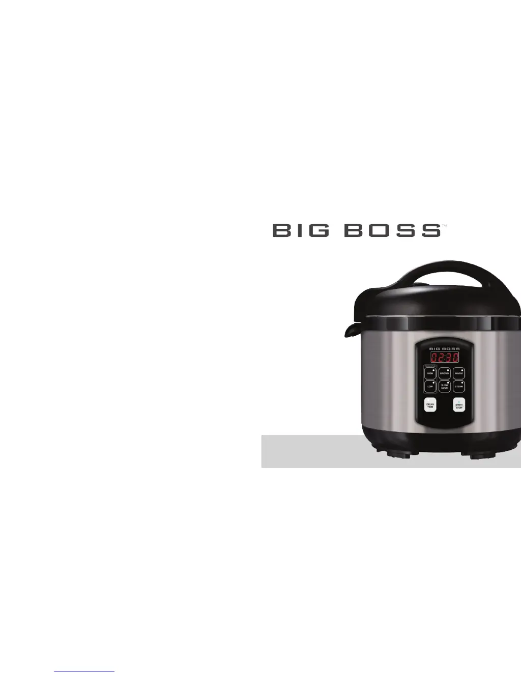 If steam leaks from under the cover of your Big Boss Electric Pressure Cooker, immediately unplug the power cord. Then, release the pressure by turning the pressure regulator knob to STEAM in short bursts. Once all pressure is released, carefully remove the lid. Inspect the gasket for tears or cracks and ensure it's correctly positioned. If overfilled, remove excess liquid before resuming cooking.