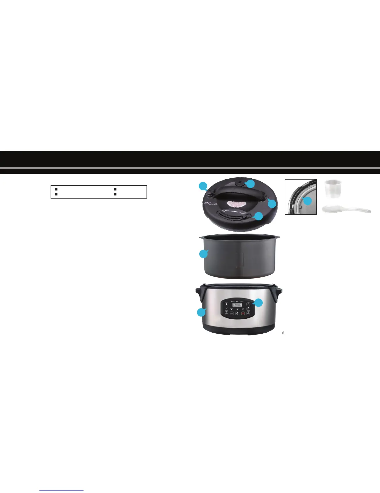 8. Control Panel-includes functions like: Pressure, Warm, Brown,