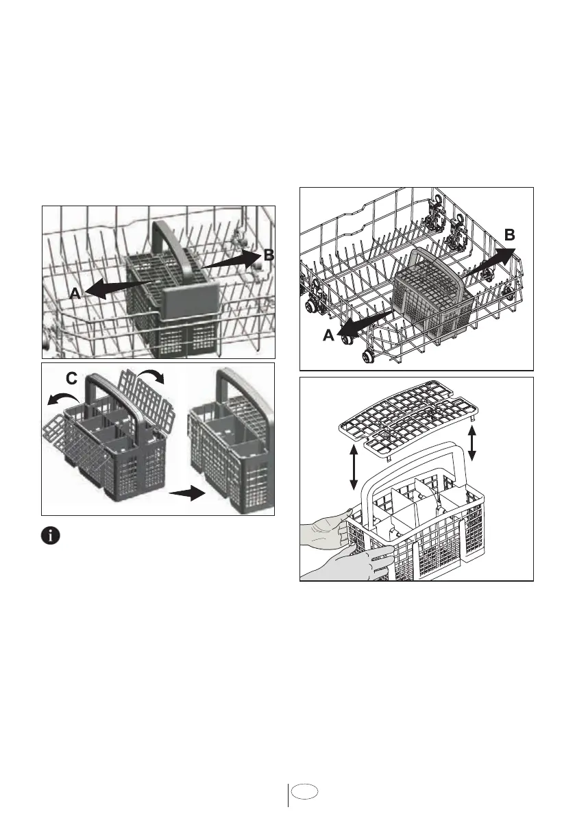 Since the cutlery basket can be moved (A,