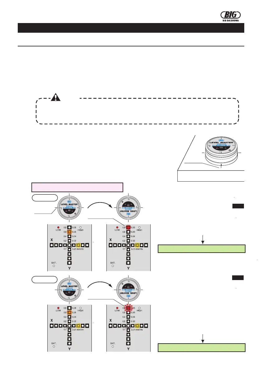 When the inclination of one of the axes is adjusted within 0.01, the LED (blue) turns on and the
