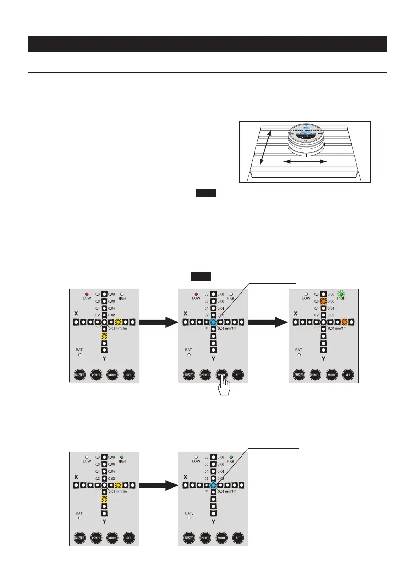 When the inclination of one of the axes is adjusted within 0.01, the LED (blue) turns on and the