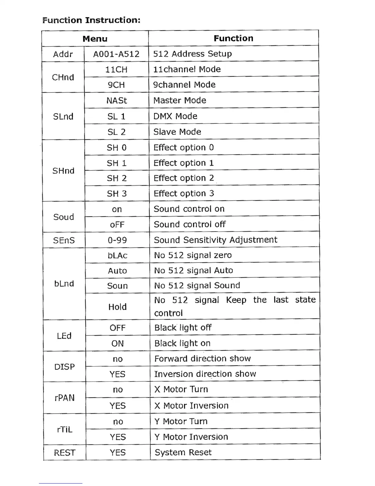 Big Dipper LS10 - Function Instruction; DMX Addressing; Channel Modes; Master and Slave Modes