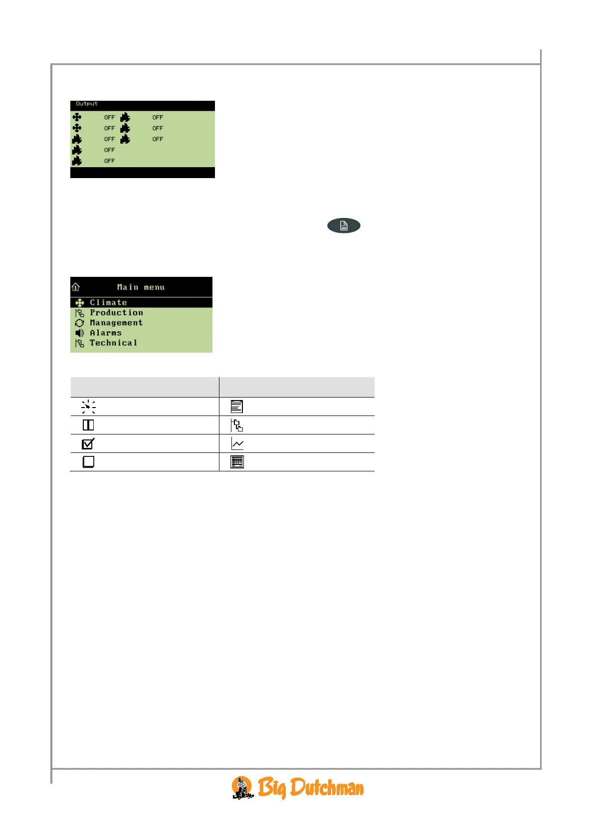 Production, Management and Alarms menus are for the everyday user while the menus under