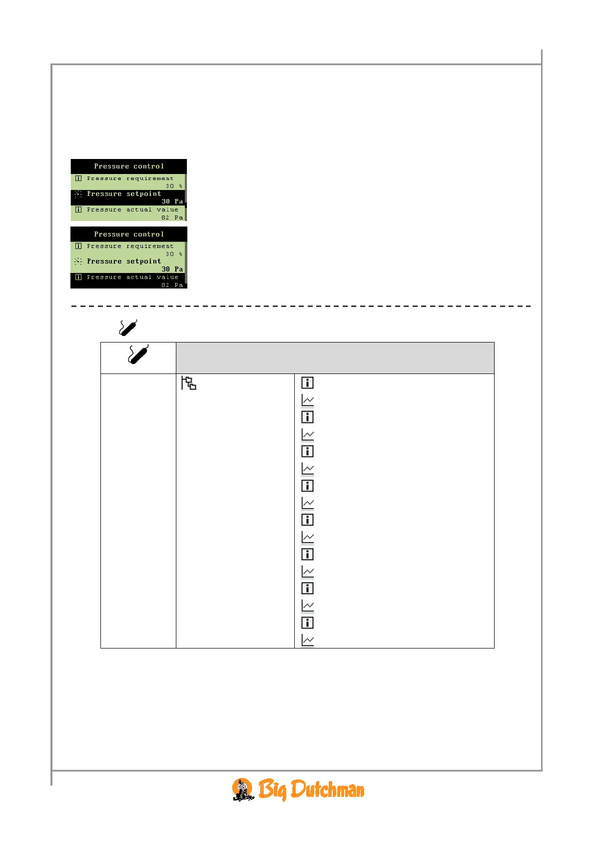 Climate/Pressure control menu, and