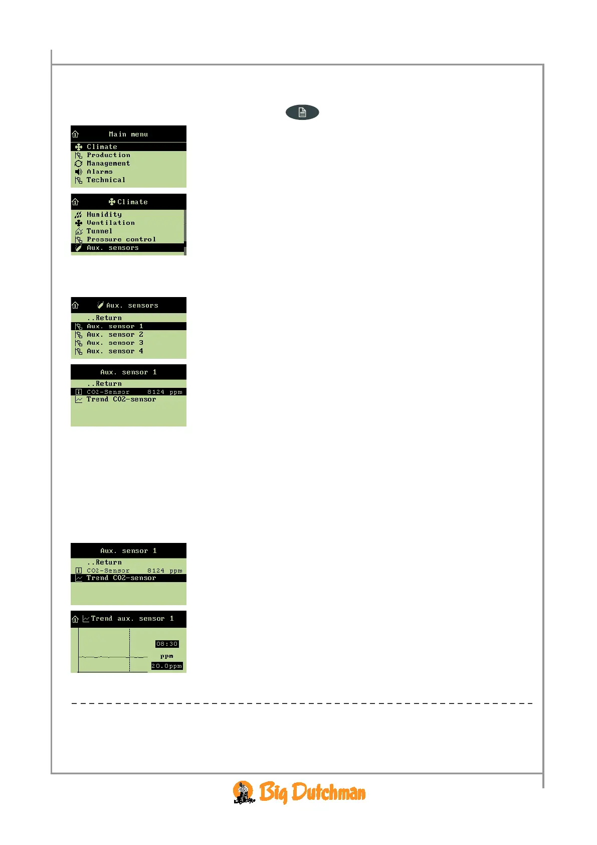 Climate/Aux. sensors menu, and