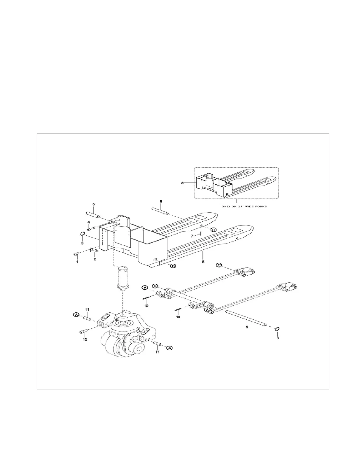 access to lift linkage under forks. Provide blocking