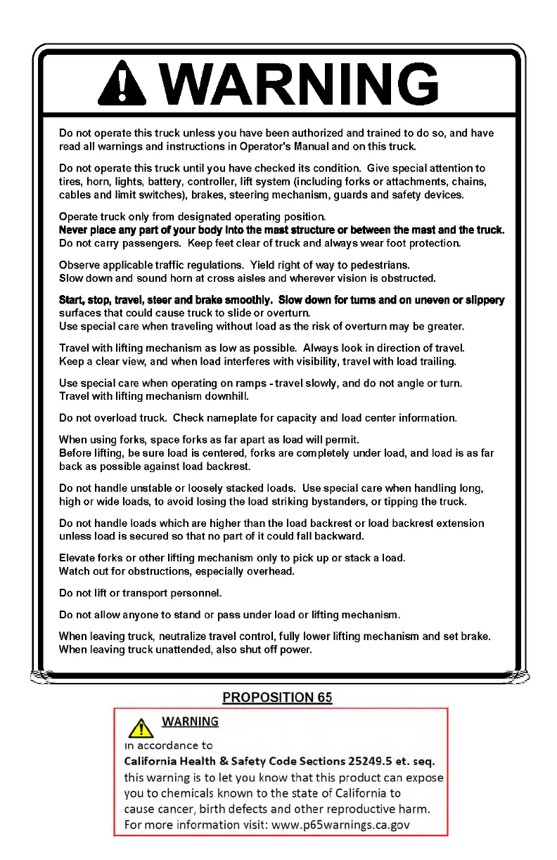 Big Joe S22 - Safety and Warnings; General Operating Safety; Proposition 65 Warning