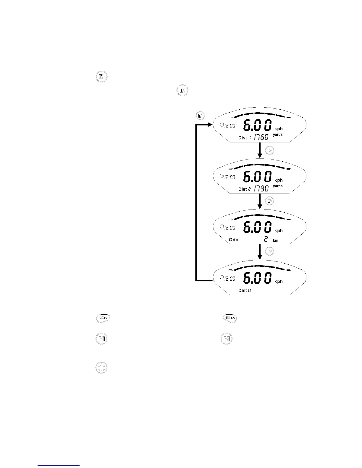 Press to switch 'Dist1' or 'Dist2' or 'Odo' and 'Dist0'. If you want to reset