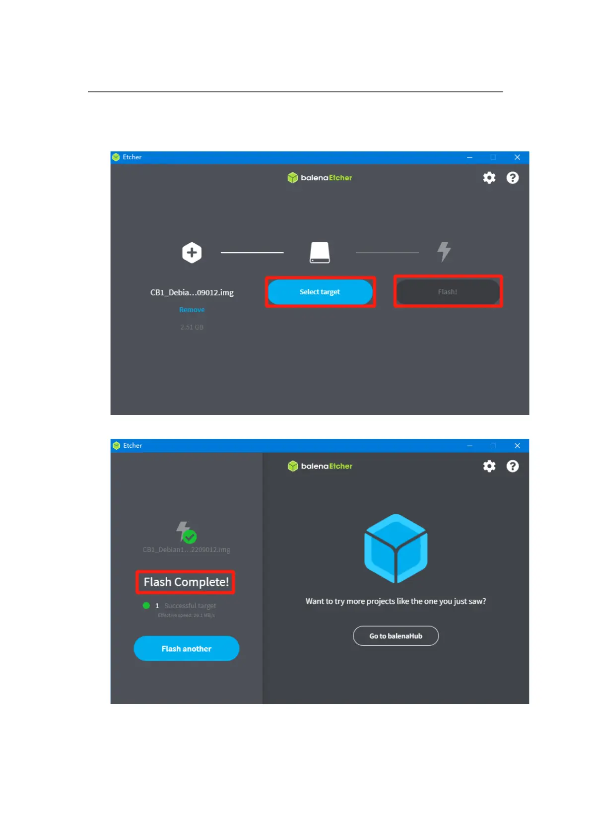 3. Select the microSD card and click "WRITE" (WRITE the image will format the