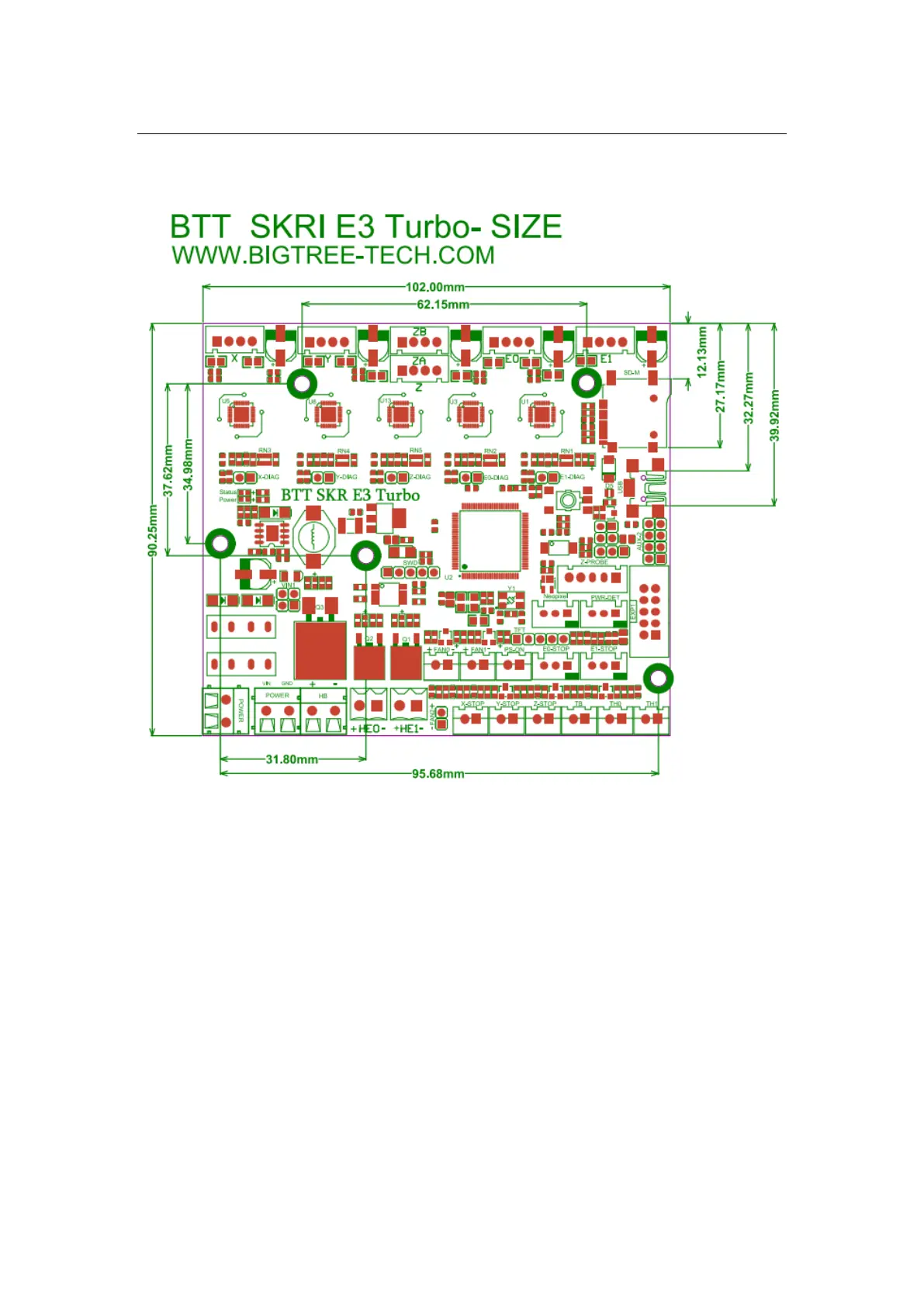 BIG TREE TECH SKR E3 Turbo - Interface Instructions; Motherboard Size Diagram