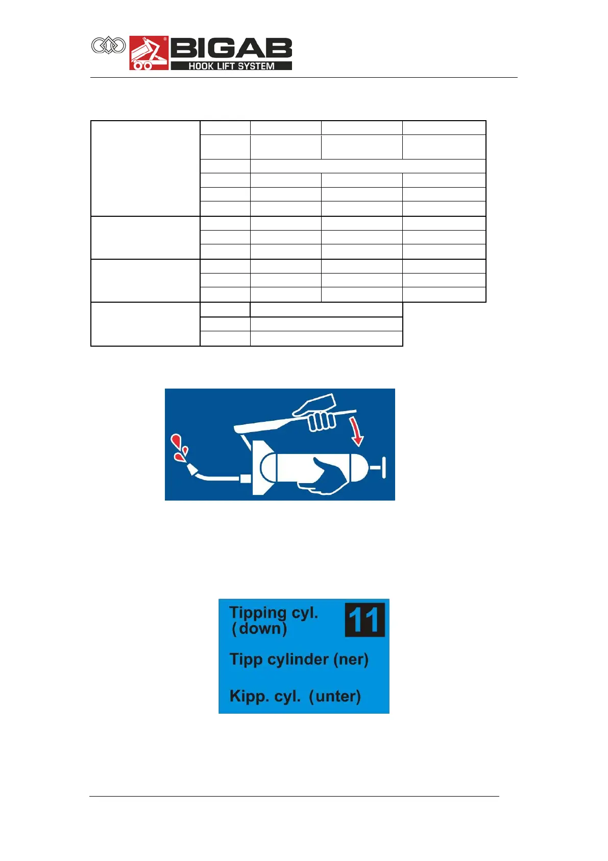 table below for more detailed information. Functions depend of the hydraulic system
