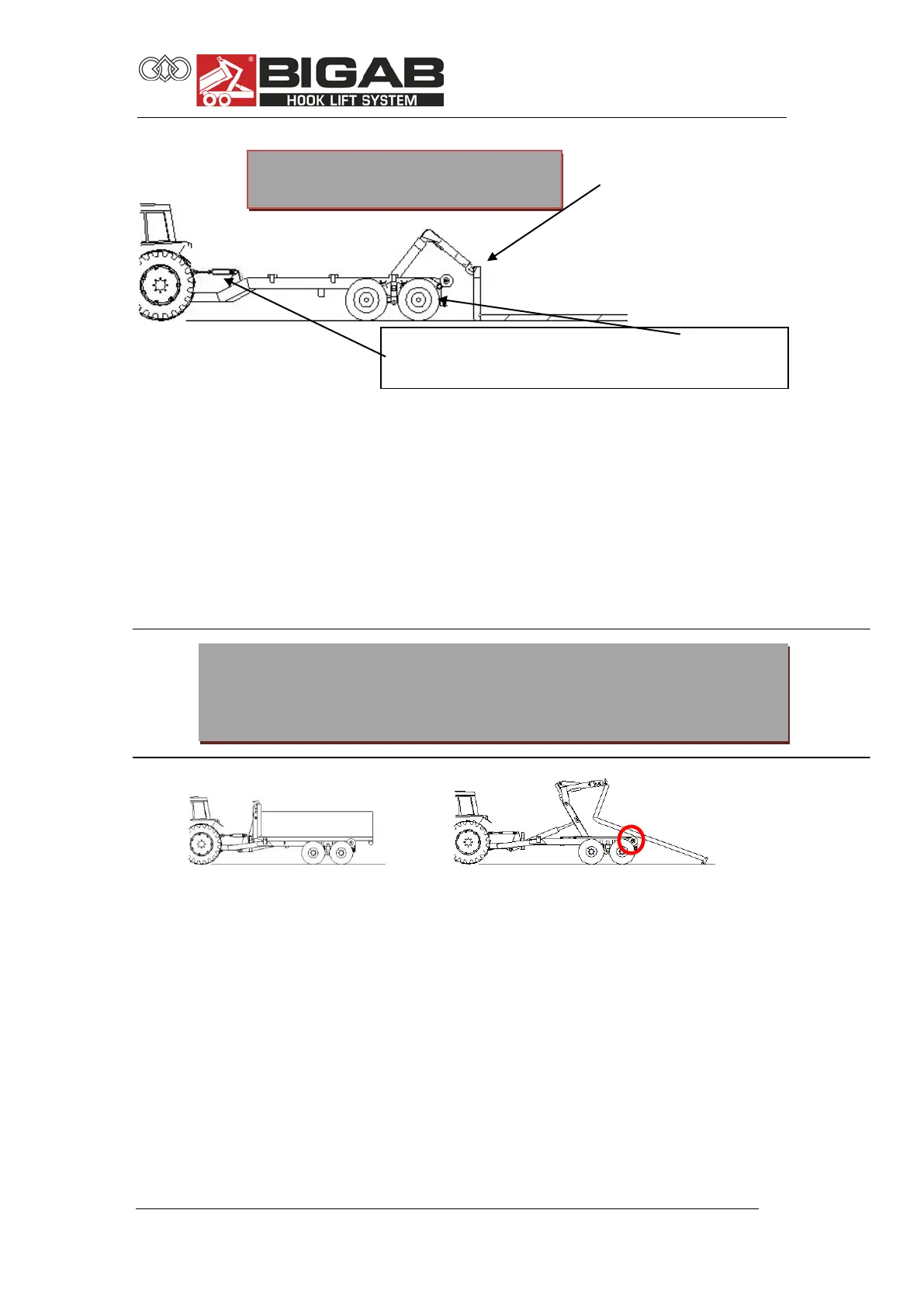 1. Raise the hooklift frame slightly so that the container bridge does not scrape against the frame when you