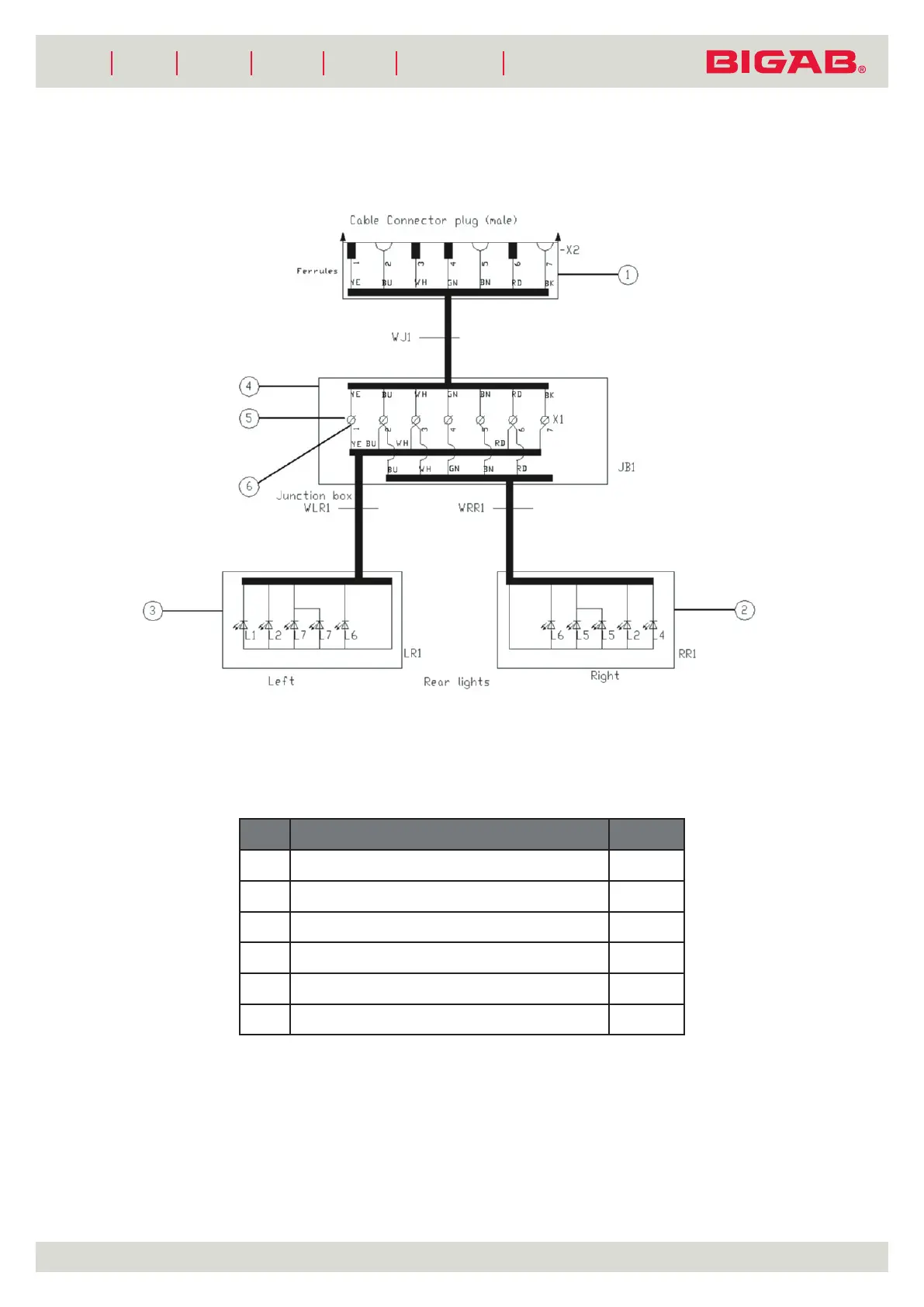 Table 8. Rear light electrical scheme main components