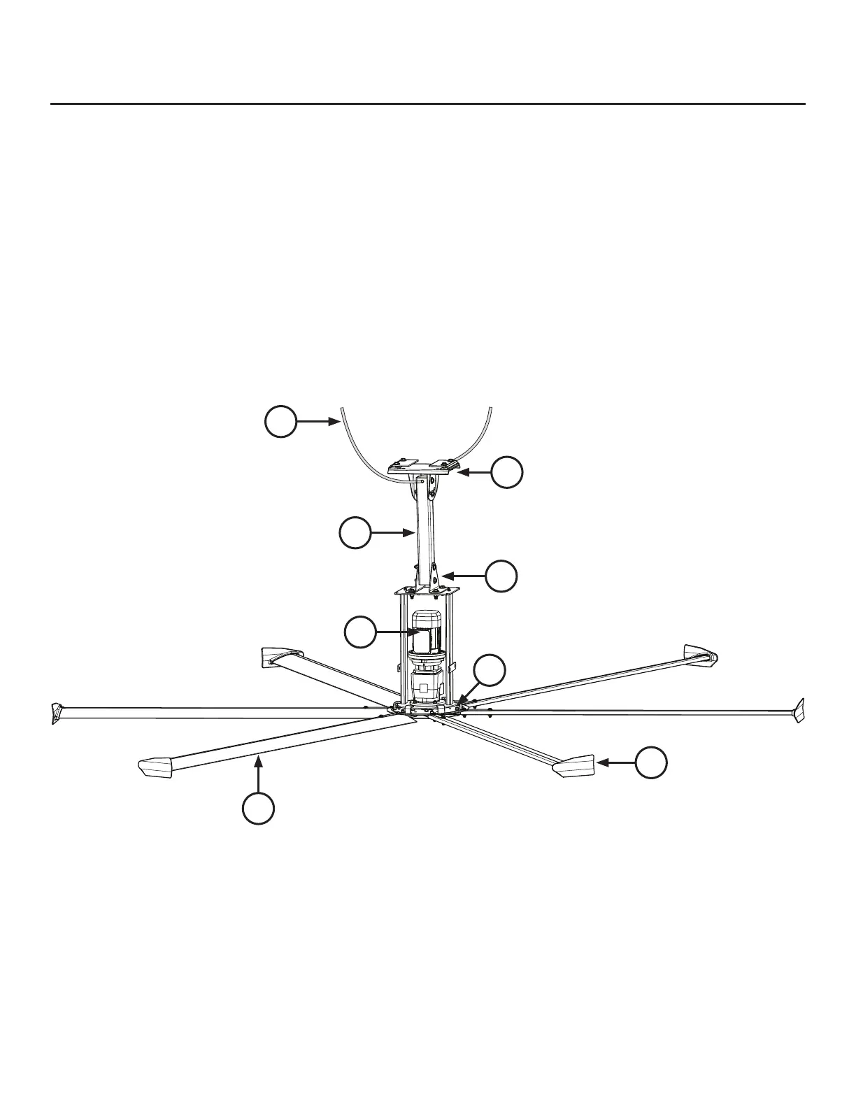 B. Upper Yoke. Secures the fan to the mounting structure and allows the fan to adjust its center of gravity. Note: The upper yoke may