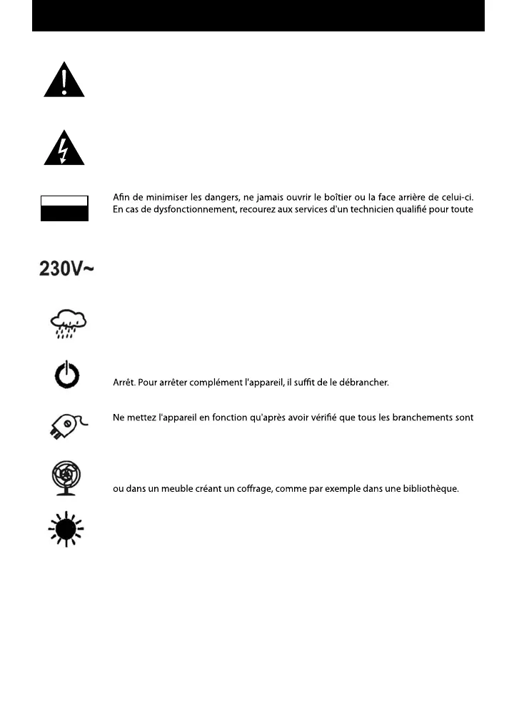 réparation. Cet appareil ne contient pas de pièces échangeables par l'utilisateur.