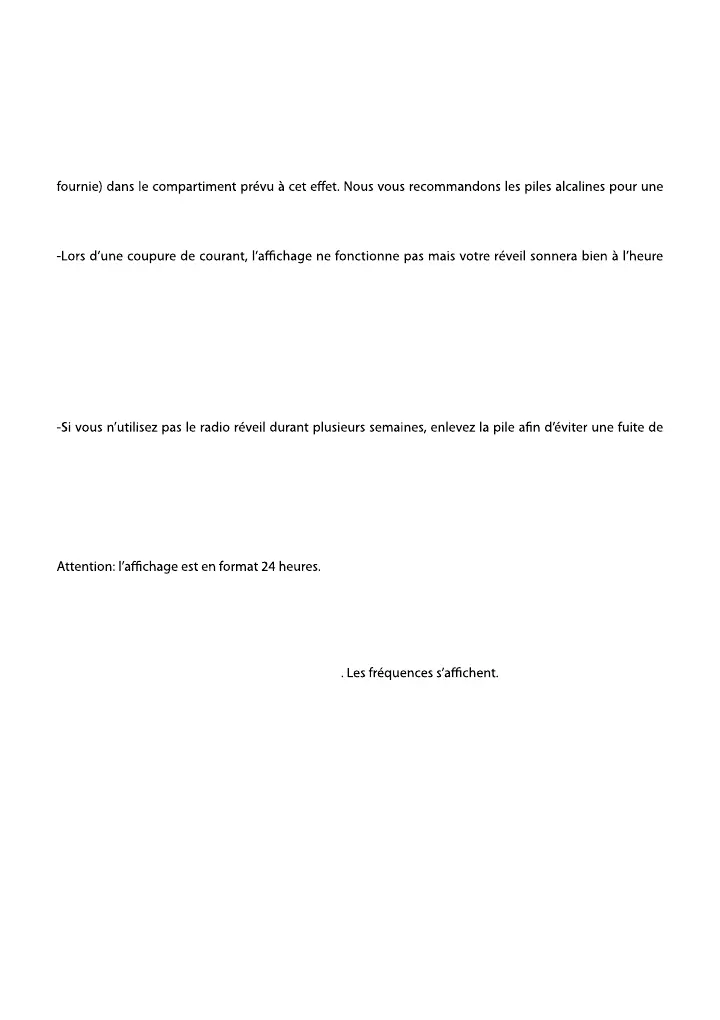 -Durant une coupure de courant, l’alarme ne foncitonnera que si la touche de sélection BUZZER / AUTO /