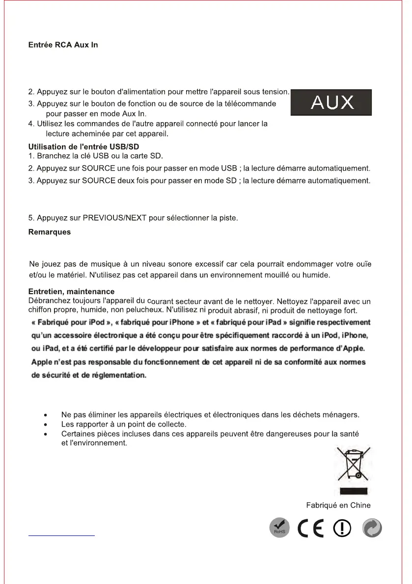 pays.iPod non inclus. Non compatible avec iPod shuffle.