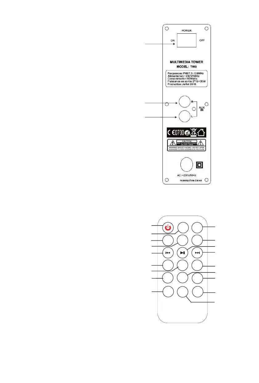 Bigben TW9 - Achterpaneel; Afstandsbediening