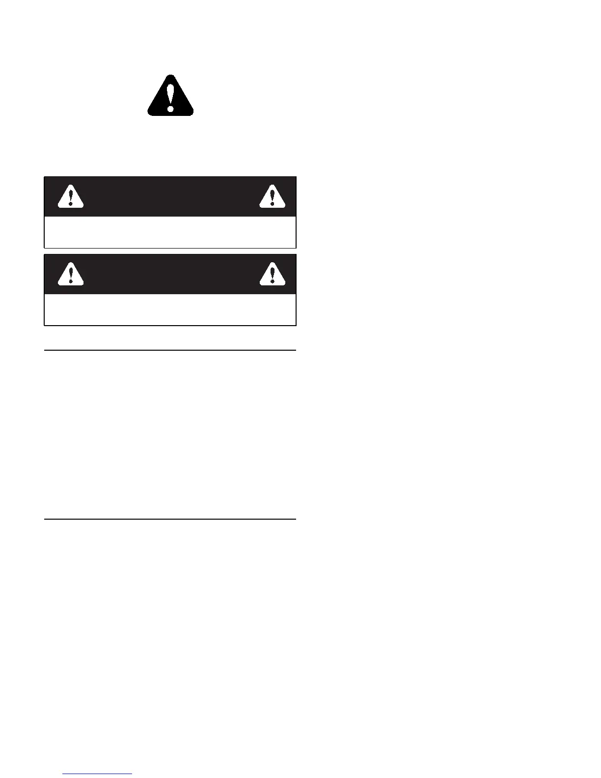 • Refuel outdoors. Never refuel or drain the fuel from the