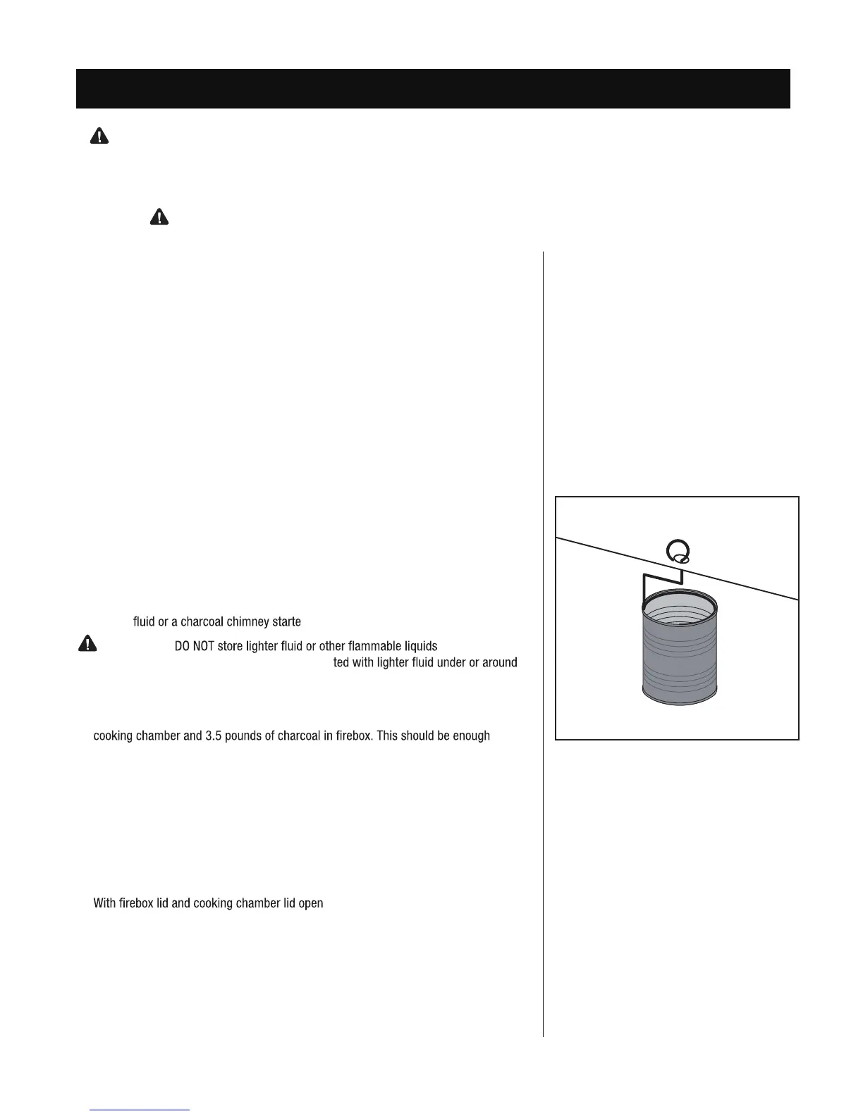 If using a Charcoal Chimney Starter, follow all manufacturer’s warn ings and