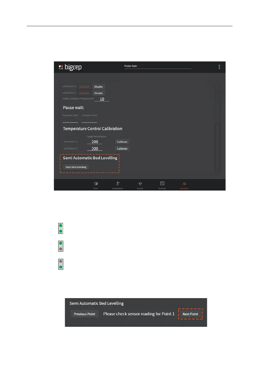 4. Open the Advanced Menu, go to Semi Automatic Bed Leveling Helper and