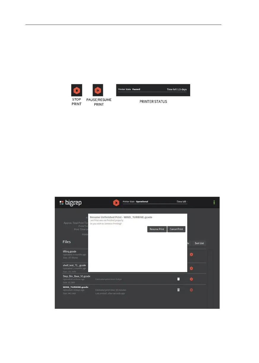 › You can pause a print and resume it by clicking on the Pause/Resume Print