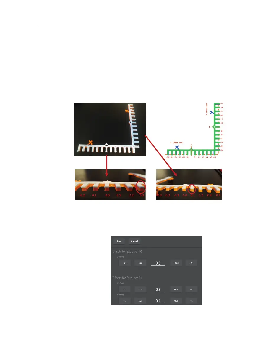 Abb. 7-5 : Vorlage Kalibrierung – in diesem Beispiel: X-Off set = 0,3 mm, Y-Off set = +0,1 mm