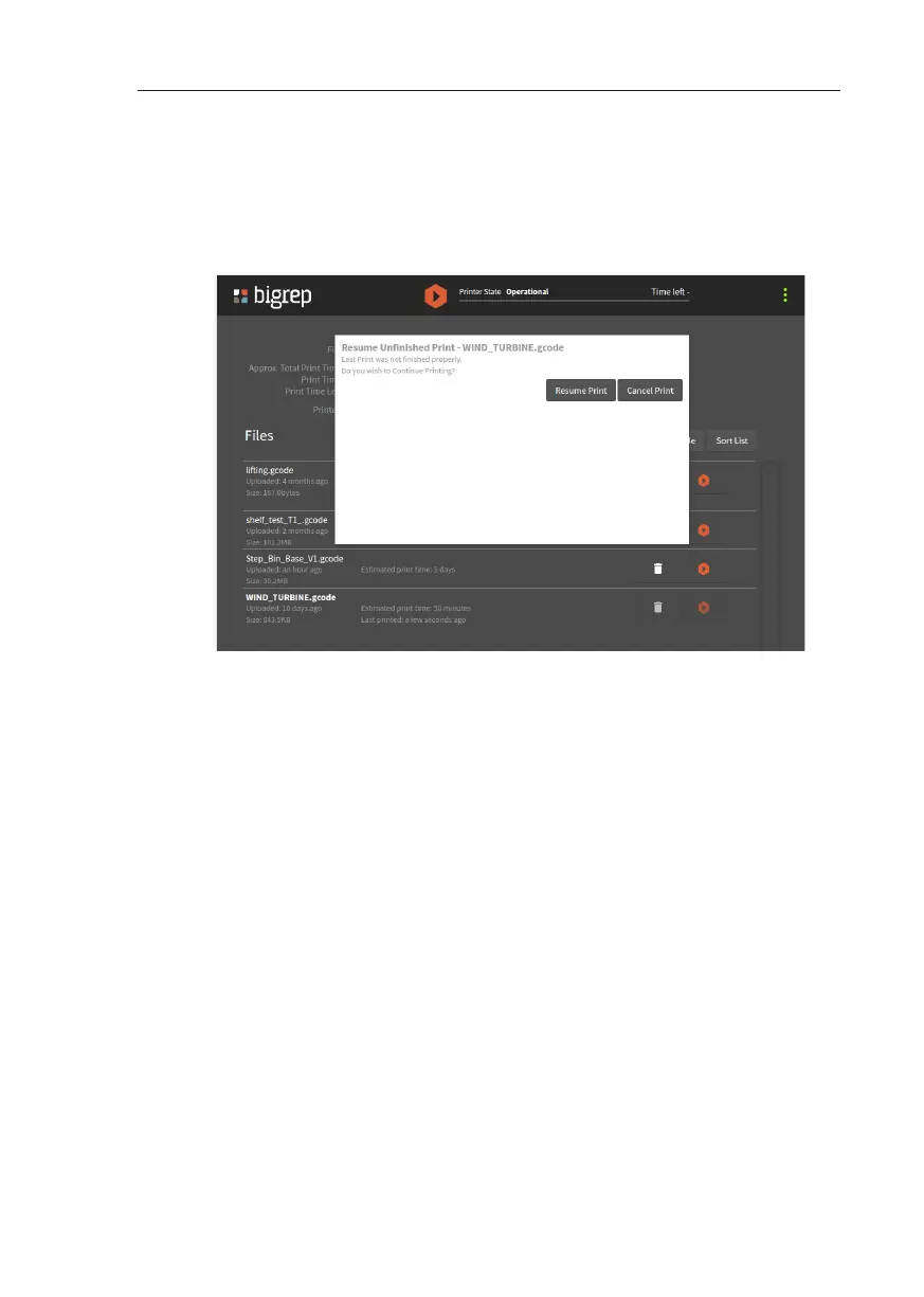 Das Interface wechselt in das Standard-Menü, der Druck kann nicht wieder aufge-