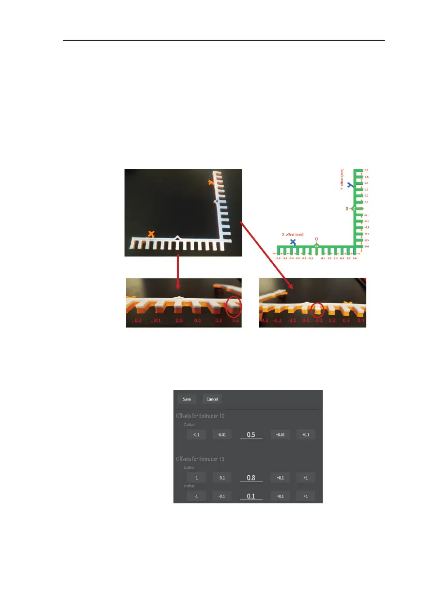 – Identify the o sets. The shapes printed with extruders T0 and T1 should