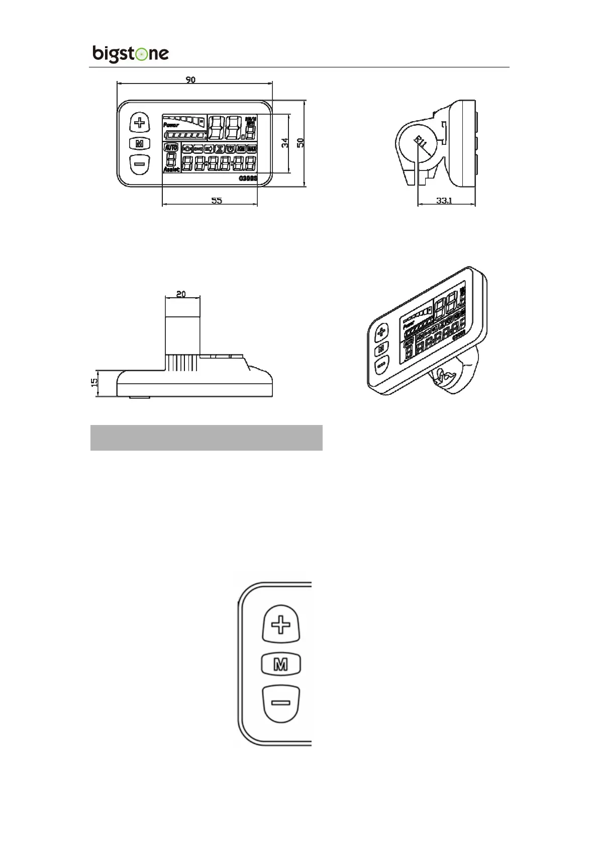 “MODE” names to “M”, “UP” names to “ +” and “DOWN” names