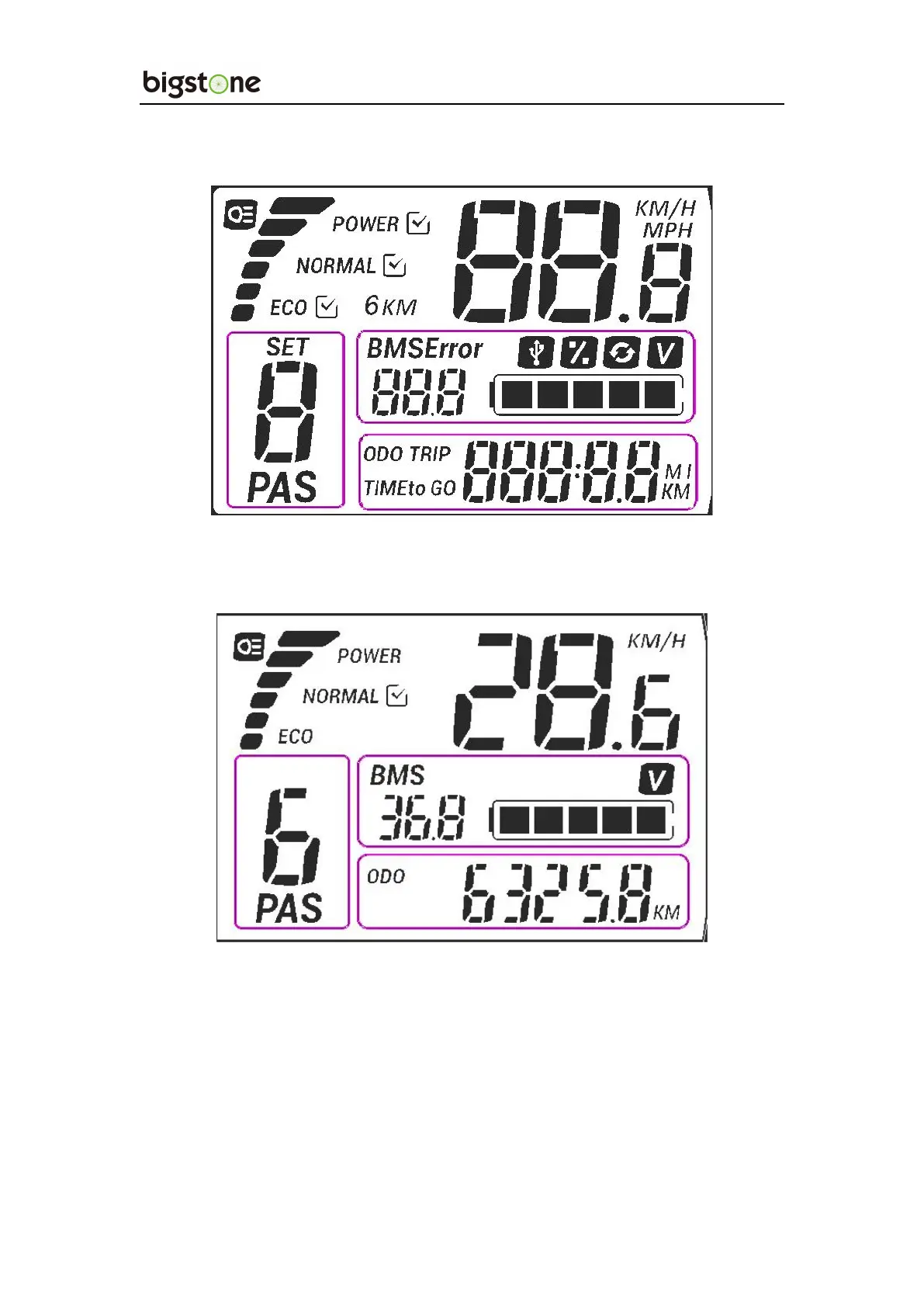BIGSTONE C500B-LCD - Normal Operation; ON;OFF; Current Display; Speed Display