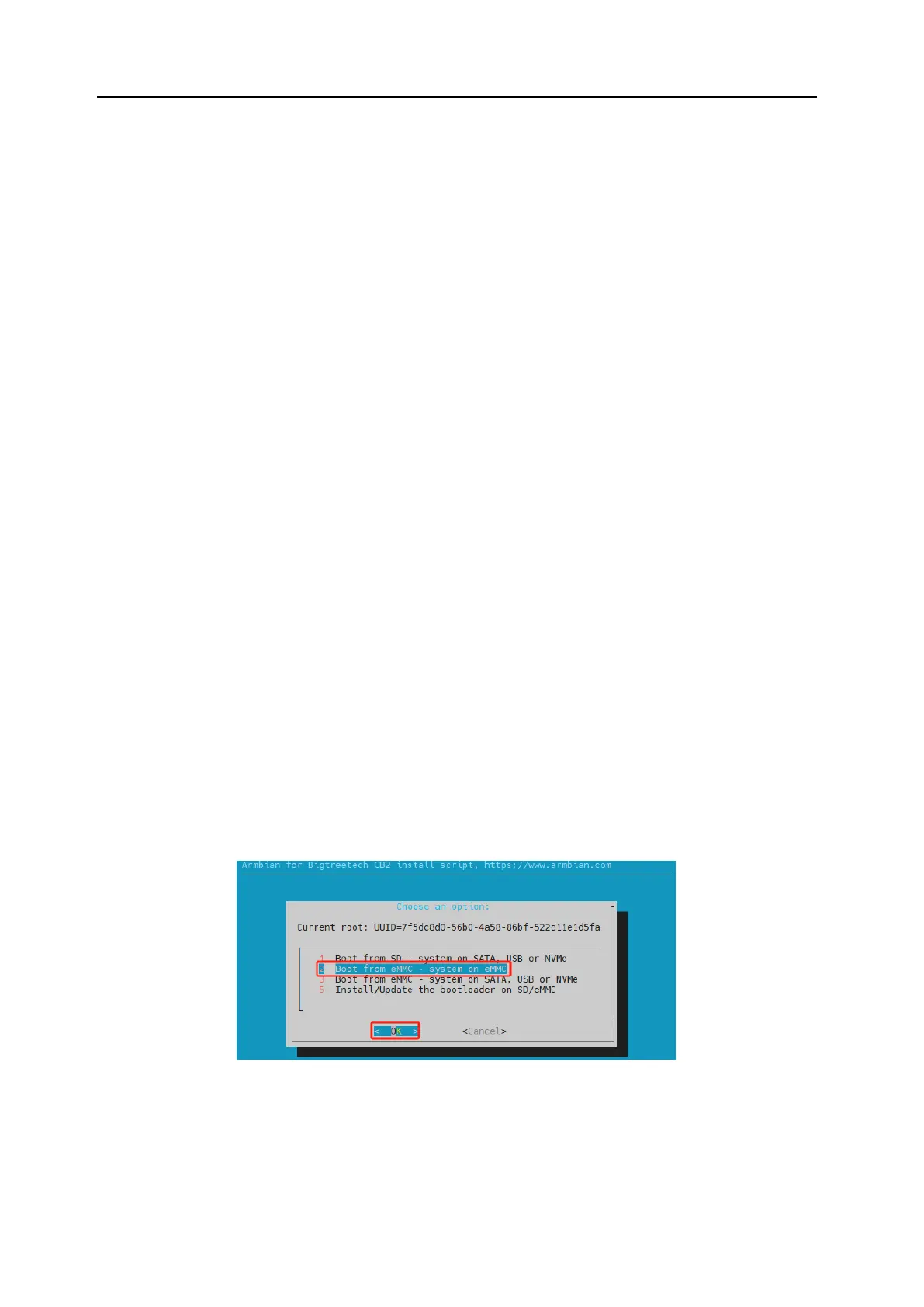 Boot From eMMC - system on eMMC" and then select "OK"