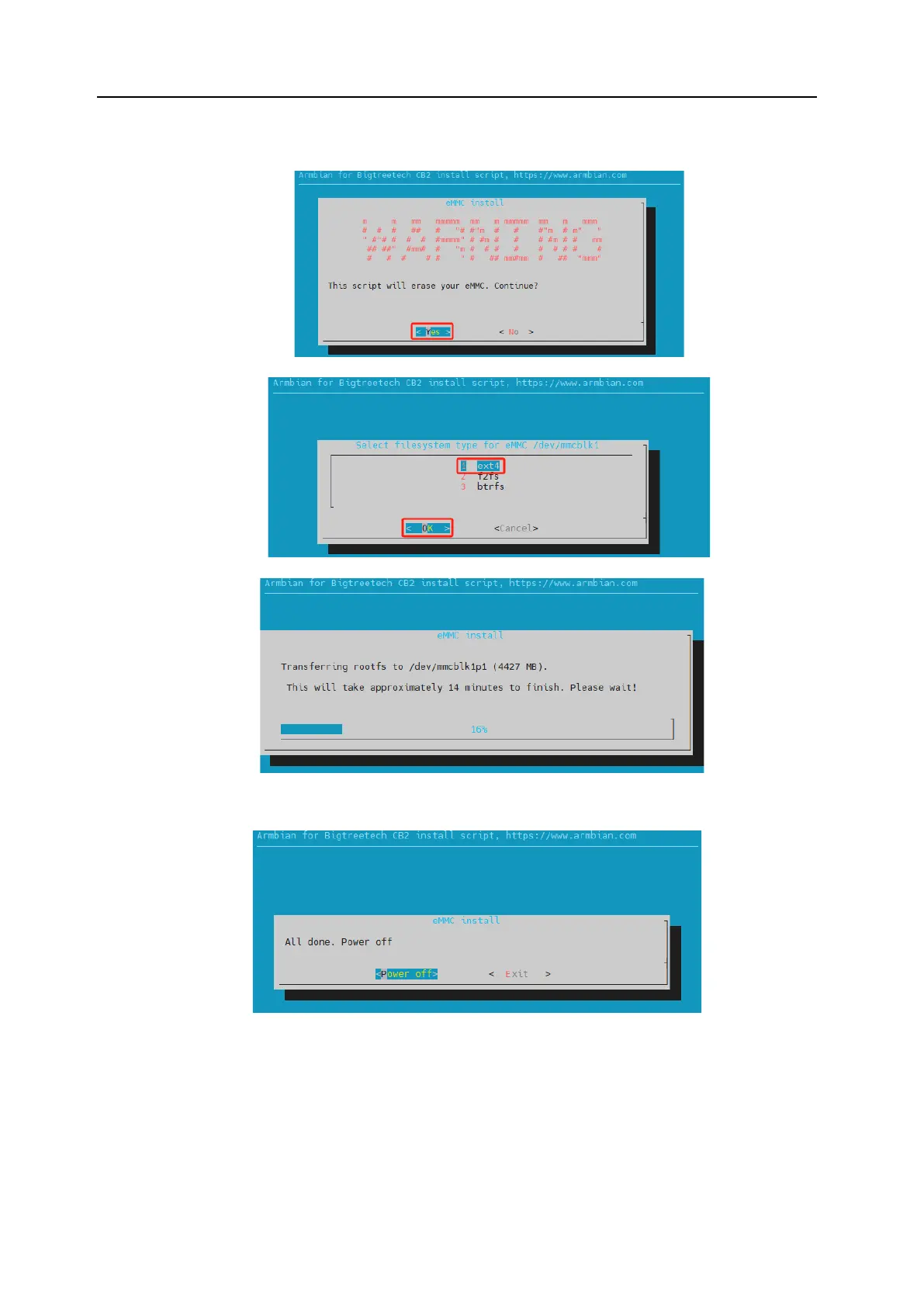 (1) Select "Yes" to start erasing and writing the system onto the eMMC.