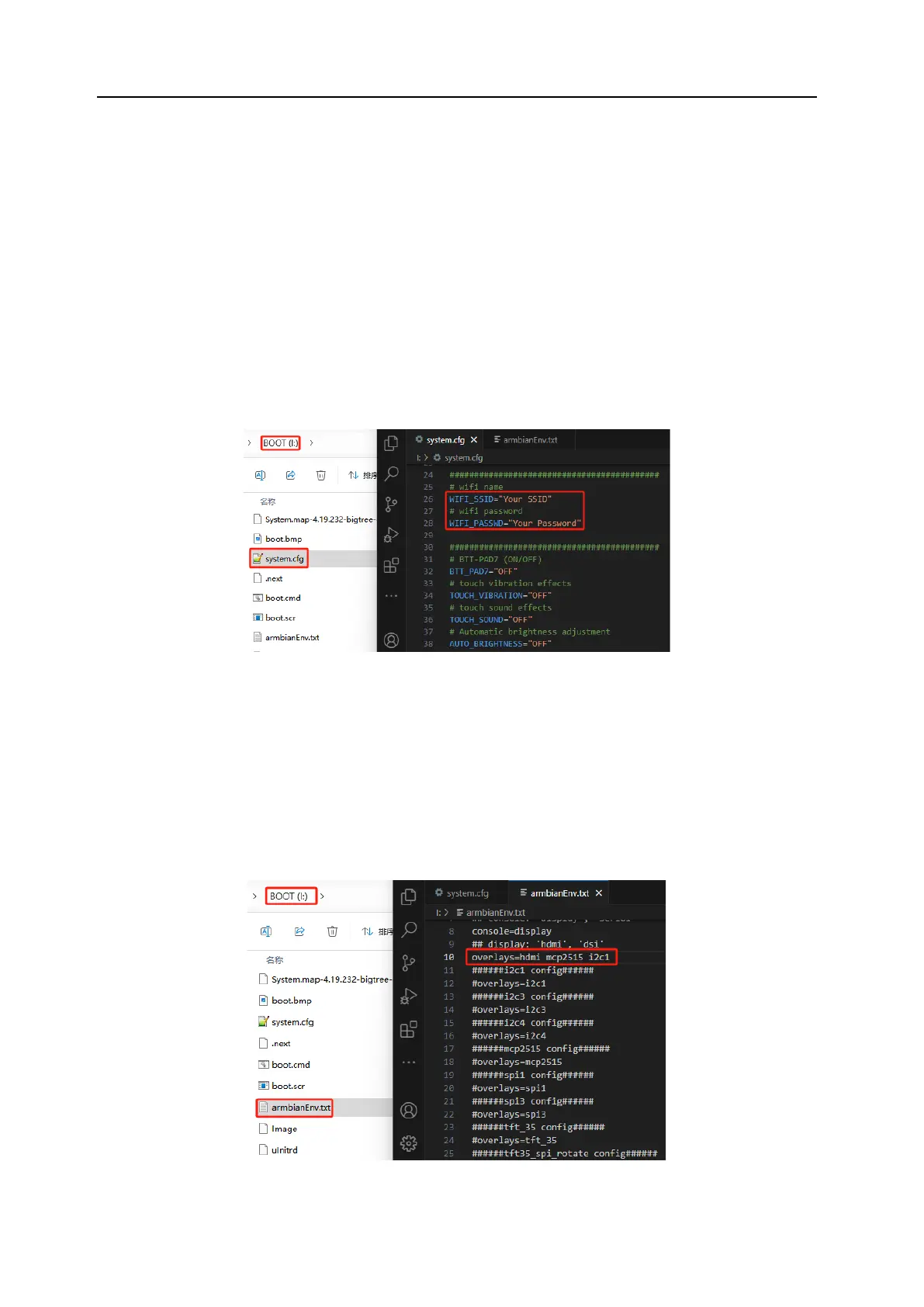Open the "armbianEnv.txt" file in the BOOT partition and set the values for overlays.