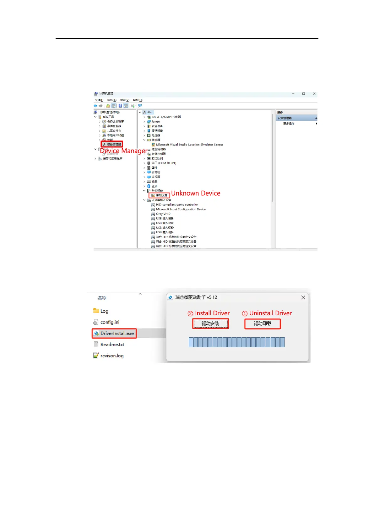 ⑴ In “Device Manager”, if you see “Unknown Device”, it indicates that