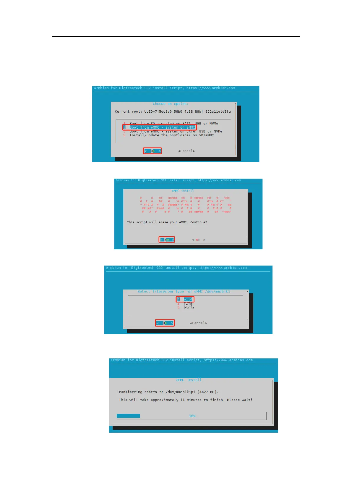 select "2 Boot From eMMC - system on eMMC" and then select "OK"