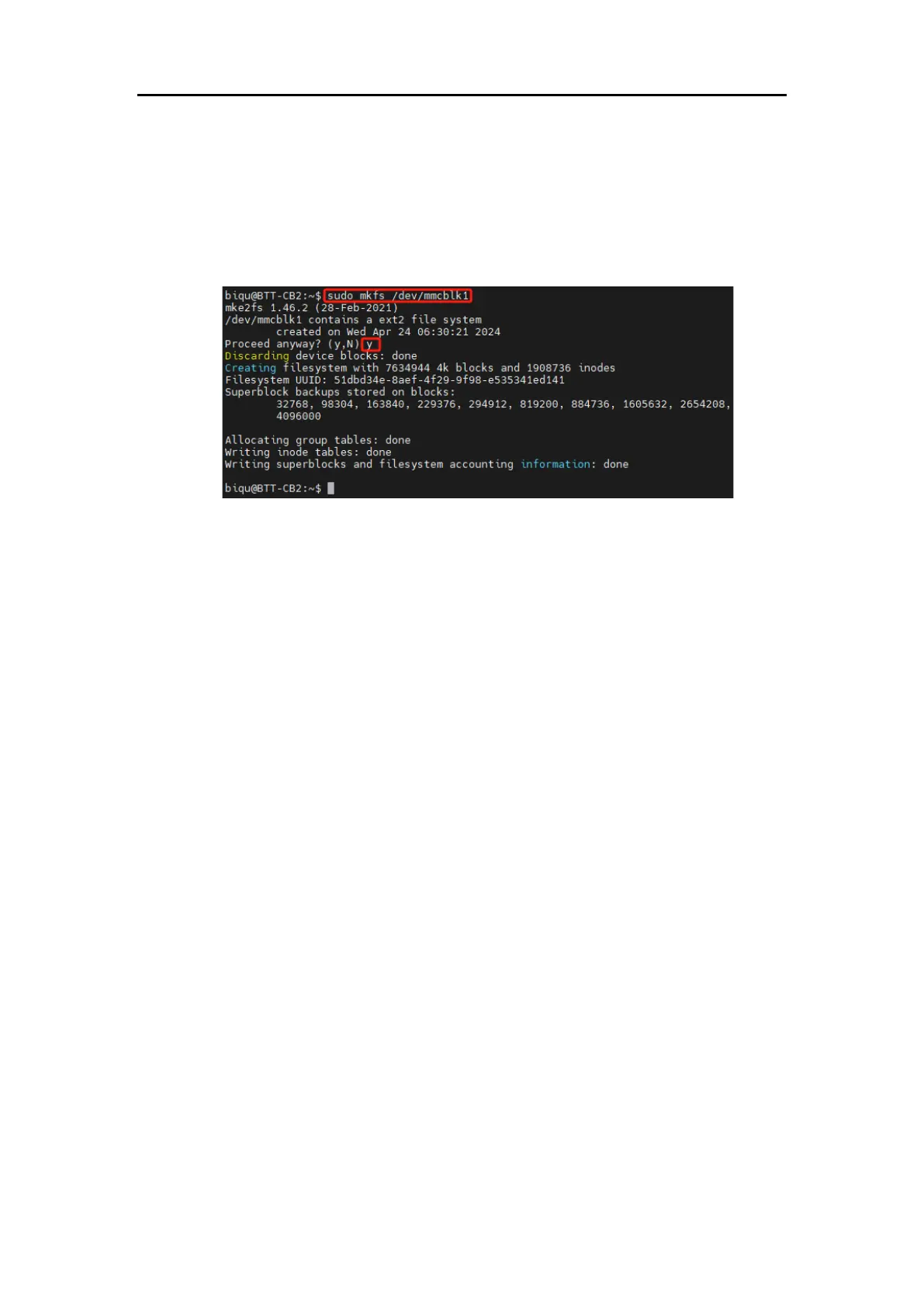 2. Run the command sudo mkfs /dev/mmcblk1 and then enter "y" to
