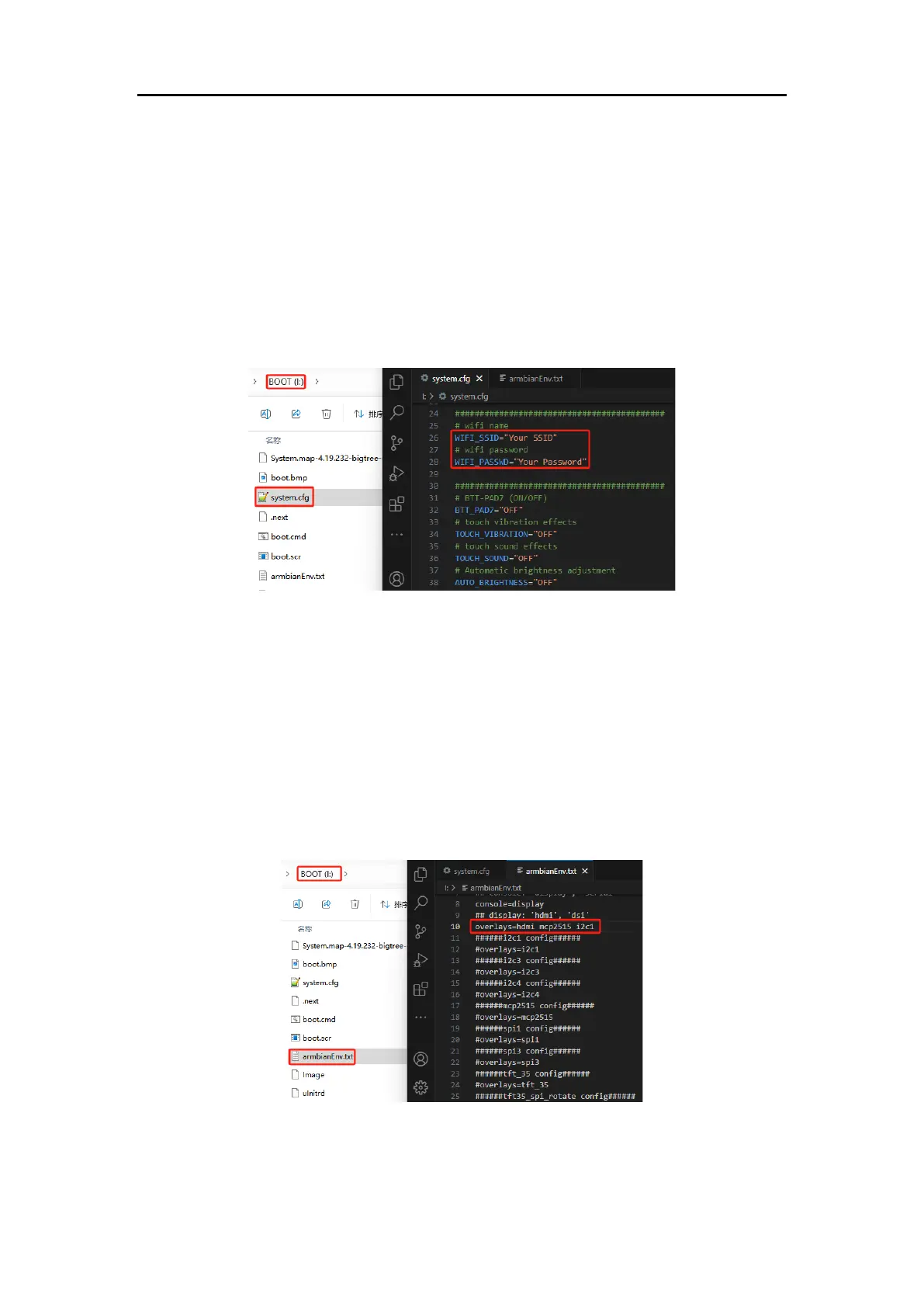 Open the "armbianEnv.txt" file in the BOOT partition and set the values for