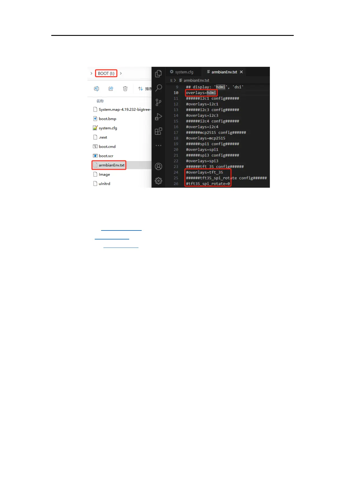 1. Open the "armbianEnv.txt" file in the BOOT partition.