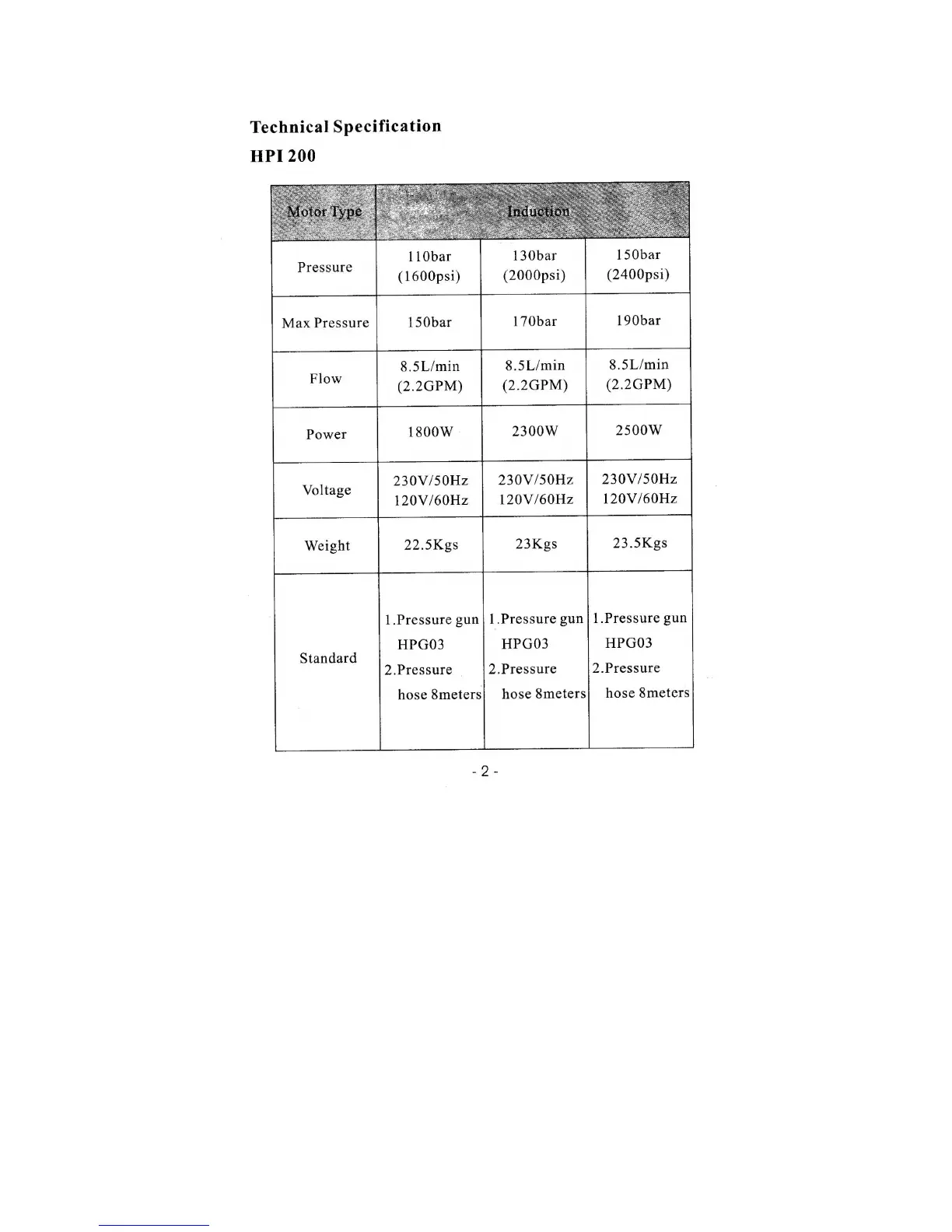 Bigyao HPI2000 - Technical Specification