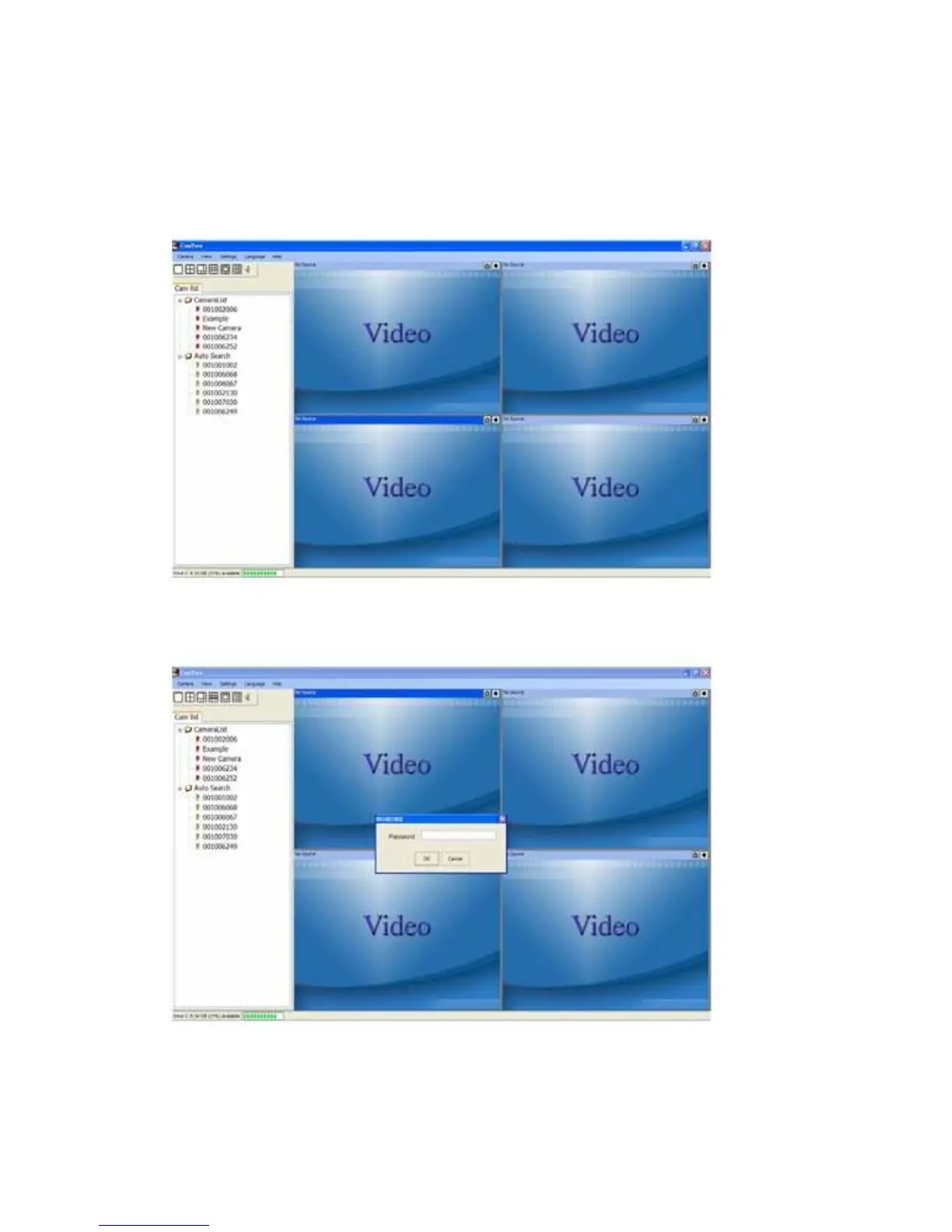 software, key in the IP CAM ID and Password(from the ID/Password card). And then