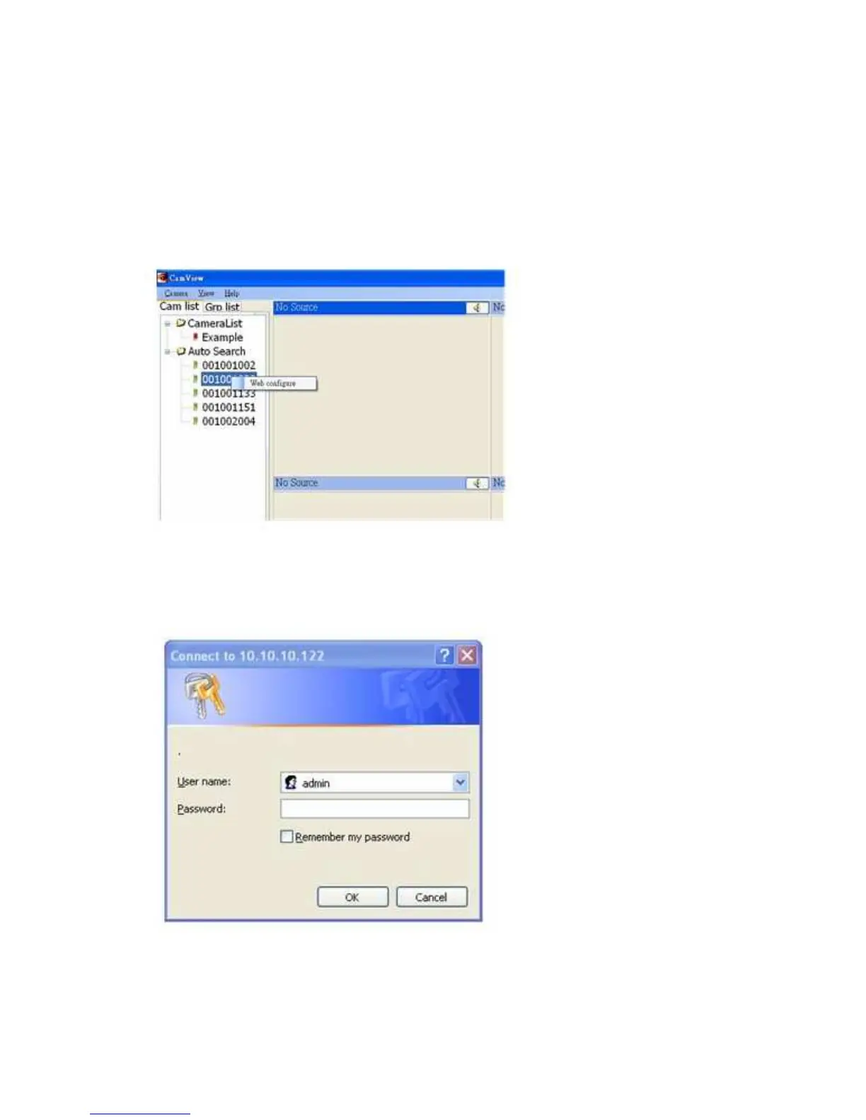 CamView software and click the “Web Configure” to open the login window of the IP