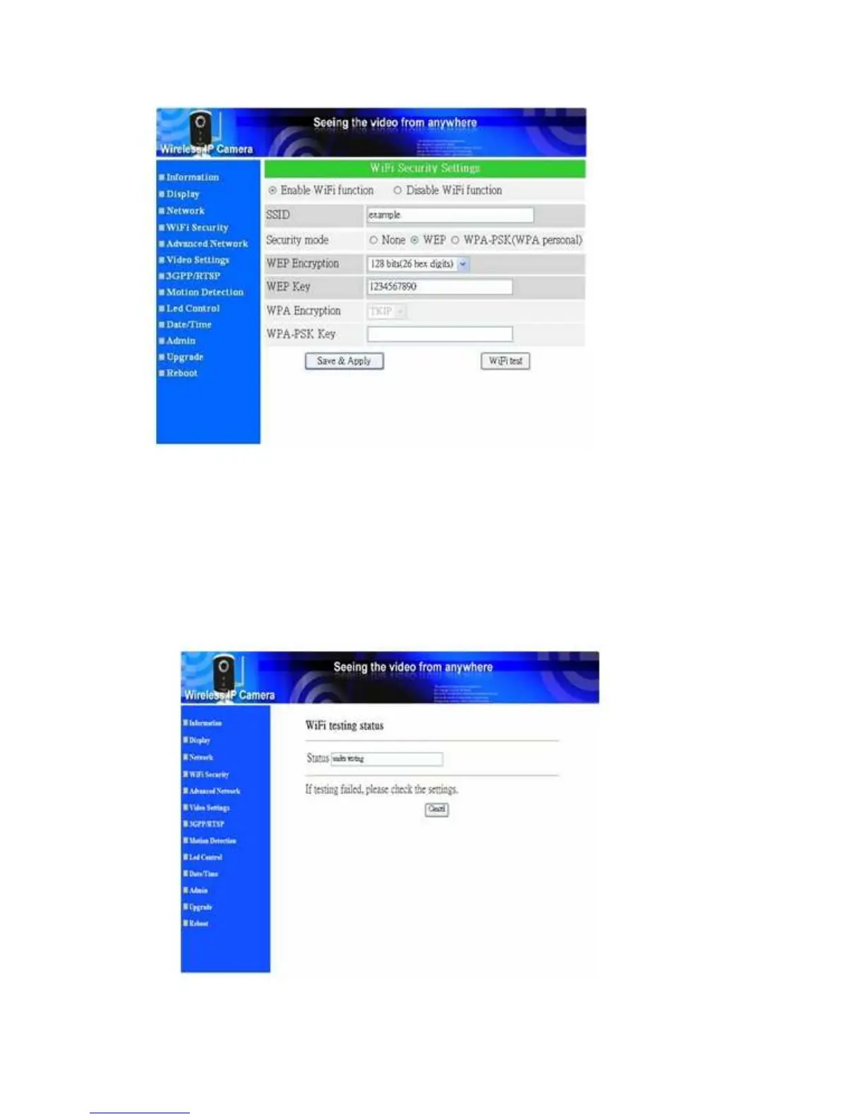 You can also click the “WiFi test” button to check if the IP CAM can connect to the