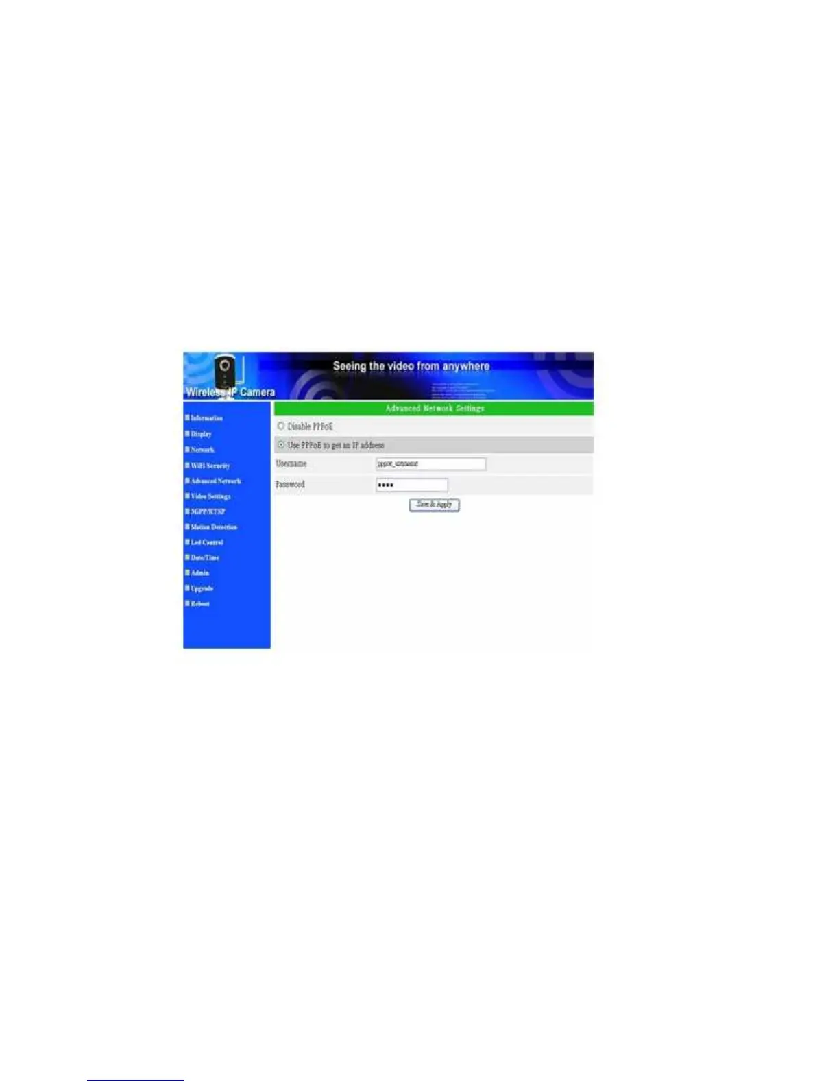 the PPPoE settings in the “Advanced Network” page. Only the PPPoE username and