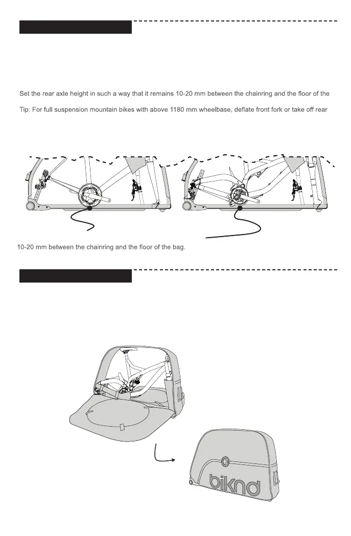Réglez la hauteur de l’axe arrière de telle sorte qu’il reste un espace entre le pédalier et le fond du sac de