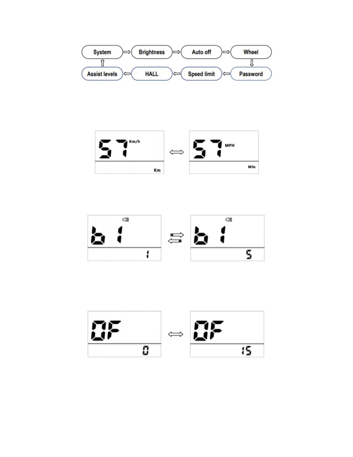 Display will show b1. Press the UP and DOWN buttons to change brightness of the