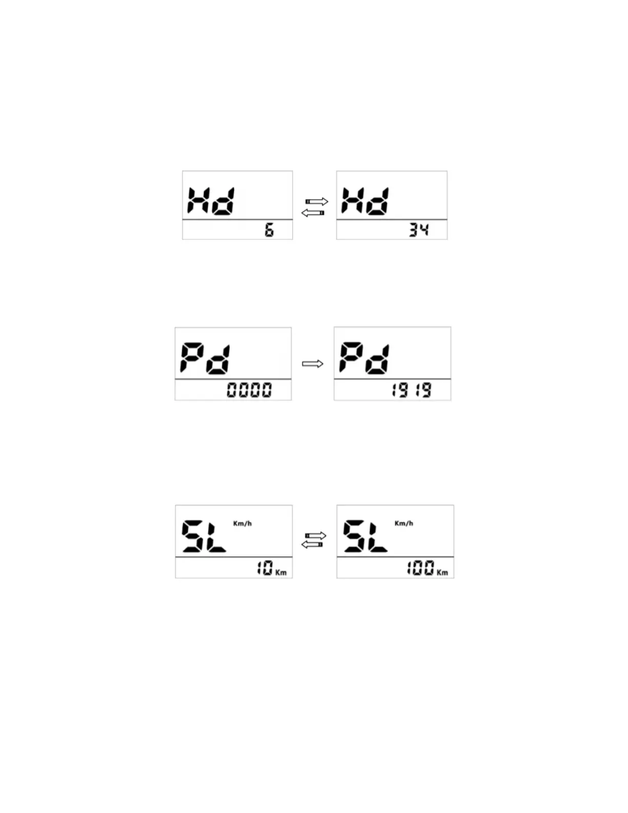 Display will show Hd. Press the UP and DOWN buttons to change wheel diameter