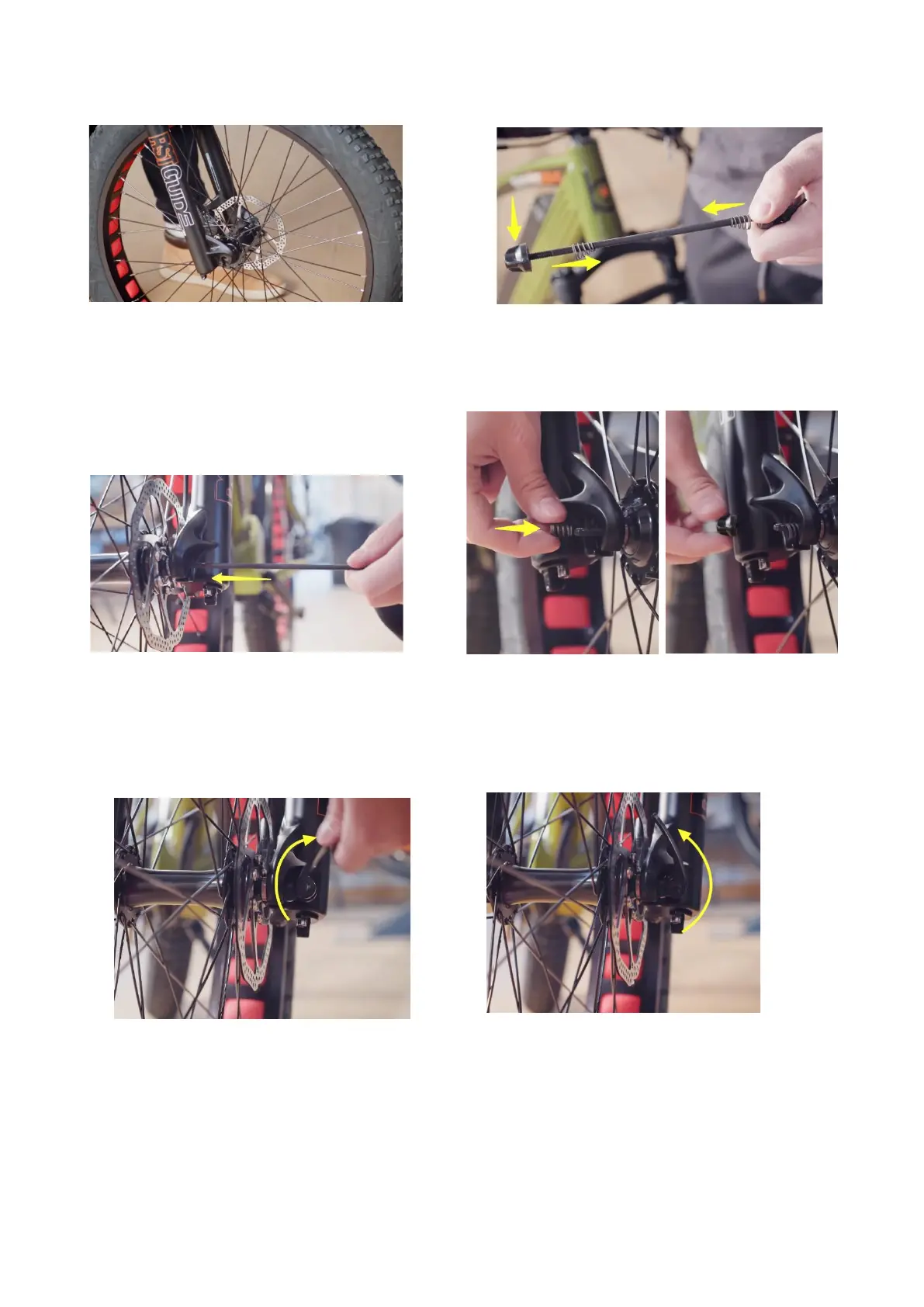 1. Gently slide the front wheel in between the fork legs taking care not to scratch the brake pads.