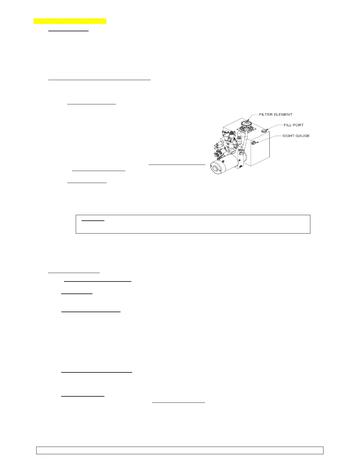 Hydraulic Fluid Level; The oil level “sight gage” should be Figure 4-2 Hydraulic Reservoir