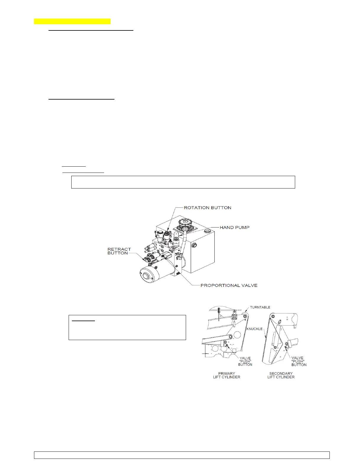 hand pump and selected hydraulic valve settings can be used to manually retract the “Telescoping Boom” or